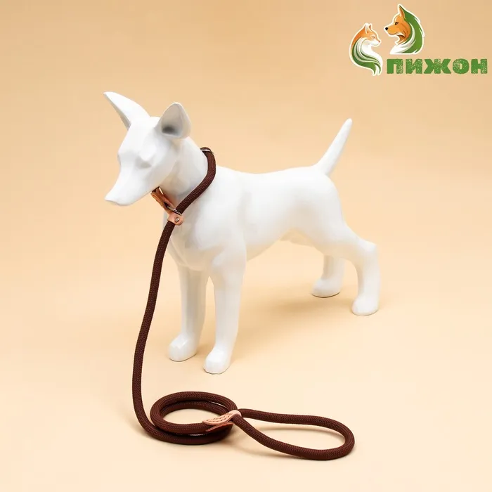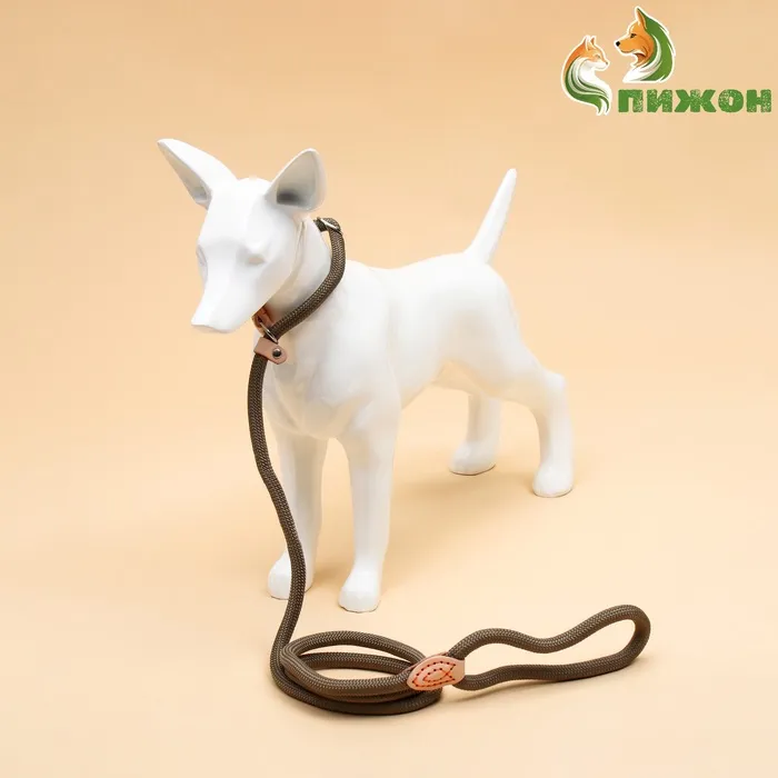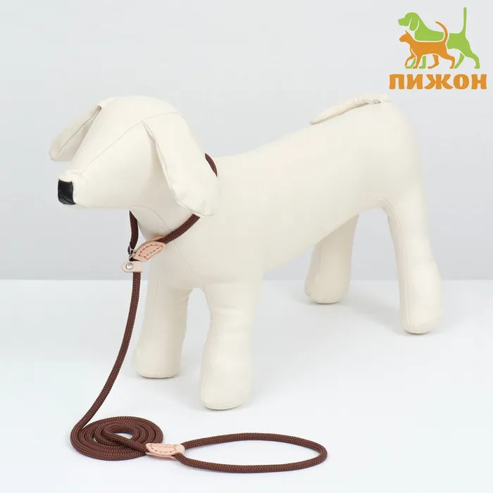 Поводок-удавка 150 х 1,2 см, полиэстер и натуральная кожа, коричневый
