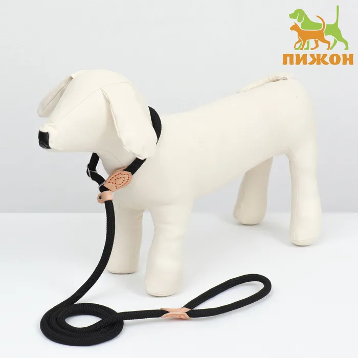 Поводок-удавка 150 см х 6 мм, полиэстер и натуральная кожа, чёрный