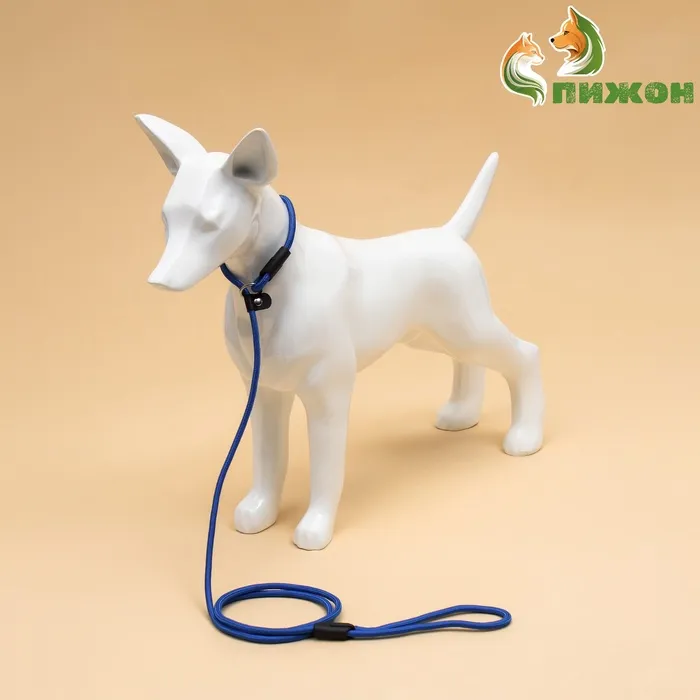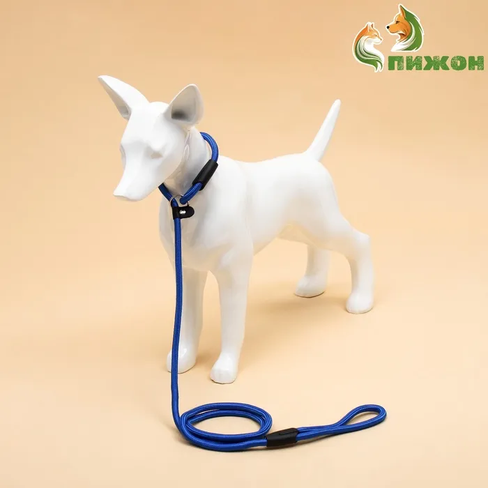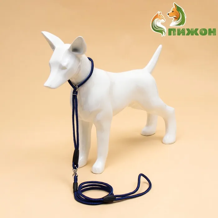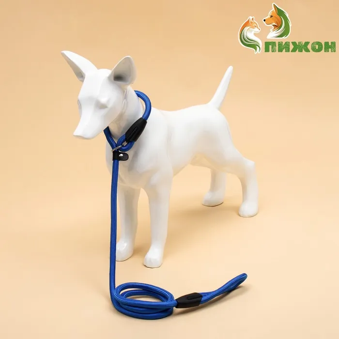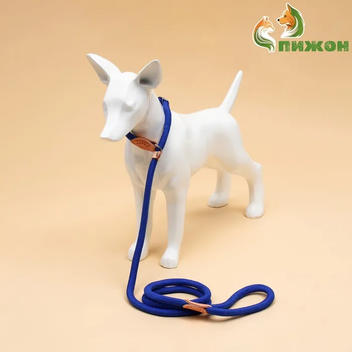 Поводок-удавка 150 х 1,2 см, полиэстер и натуральная кожа, синий