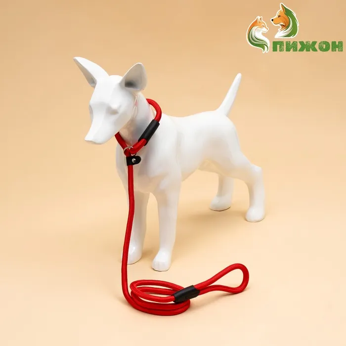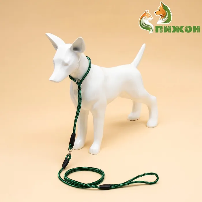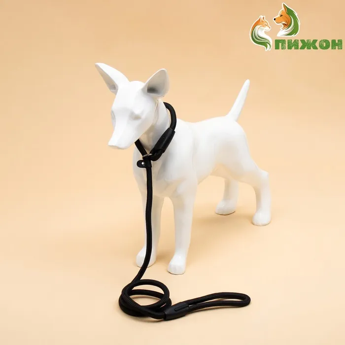 Поводок-удавка 150 х 1 см, полиэстер и натуральная кожа, чёрный