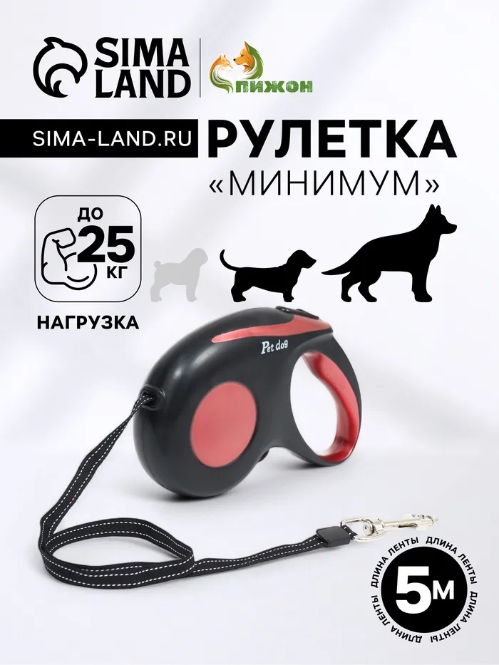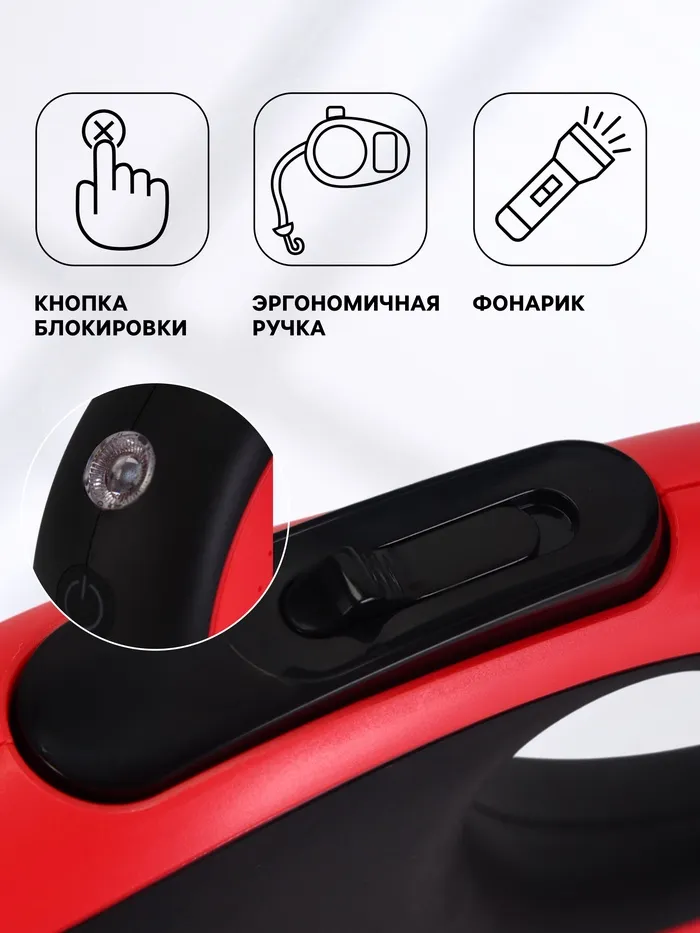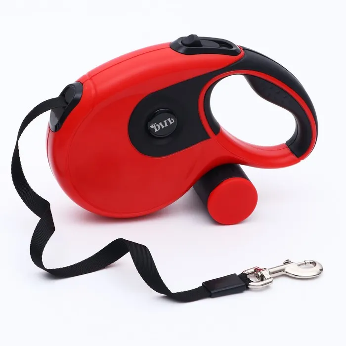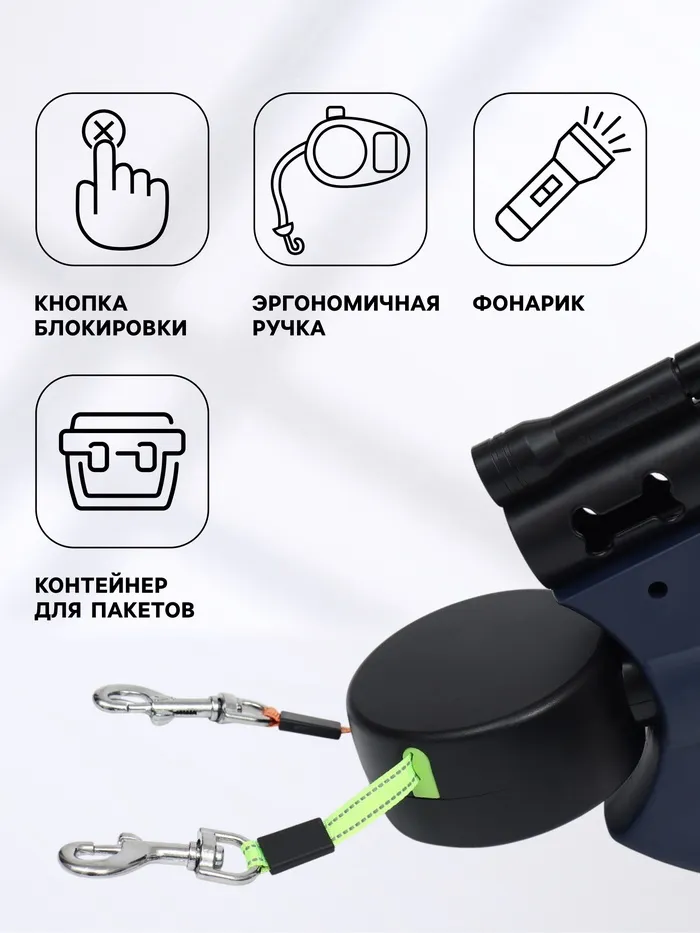 Рулетка-сворка на 2 собак, с фонариком и контейнером для пакетов, 3 м, до 15 кг каждая
