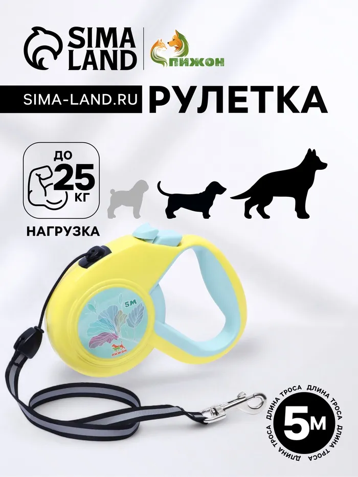 Рулетка "Пижон" с прорезиненной ручкой, 5 м, до 25 кг, трос, жёлто-серая