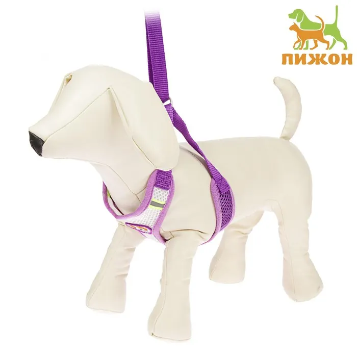 Шлейка регулируемая дышащая, светоотражающая, размер XL (ОШ 48-68; ОГ 58-72 см), фиолетовая