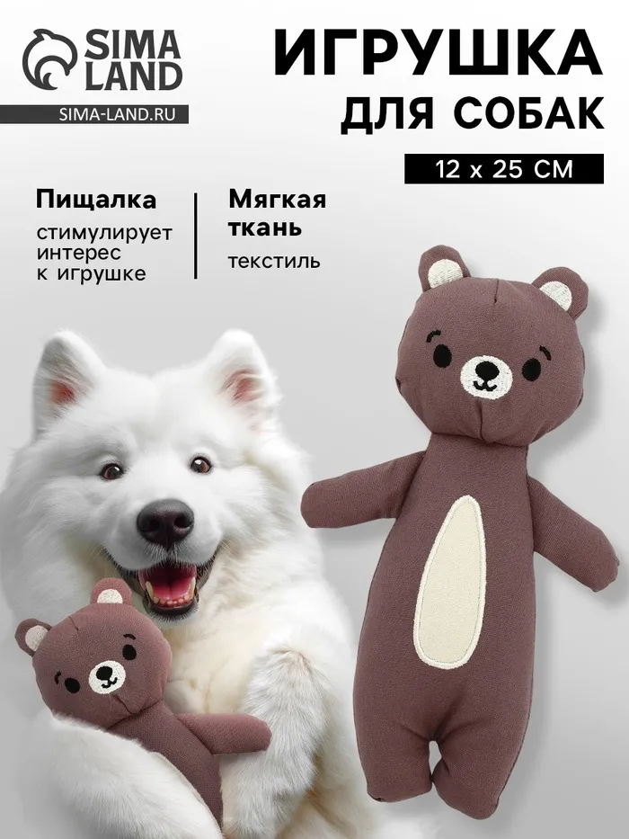 Игрушка для собак с пищалкой «Мишка», 12×25 см, коричневый