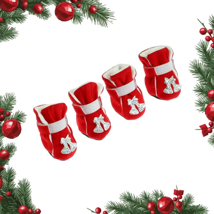 Ботинки для собак "Бубенцы", набор 4 шт, размер S, красные