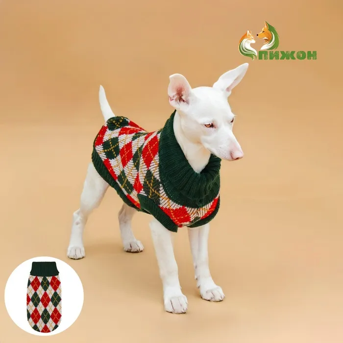 Одежда для собак. Свитер вязаный с орнаментом «Новогодний», красный, размер XL
