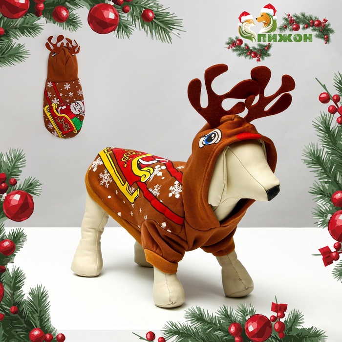 Толстовка для собак «Олень с рожками», XL (ДС 40, ОГ 50 см