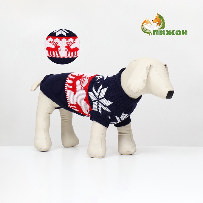 Свитер для животных «Олень на красном», M (ДС 26, ОШ 26, ОГ 28-46 см)