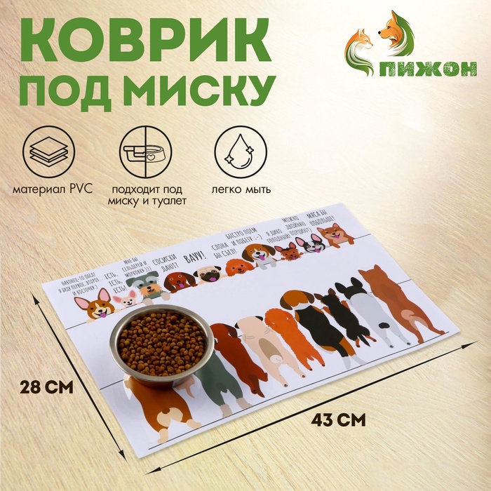 Коврик под миску "Пижон" с нескользящим основанием 43 х 28 см "Собаки"