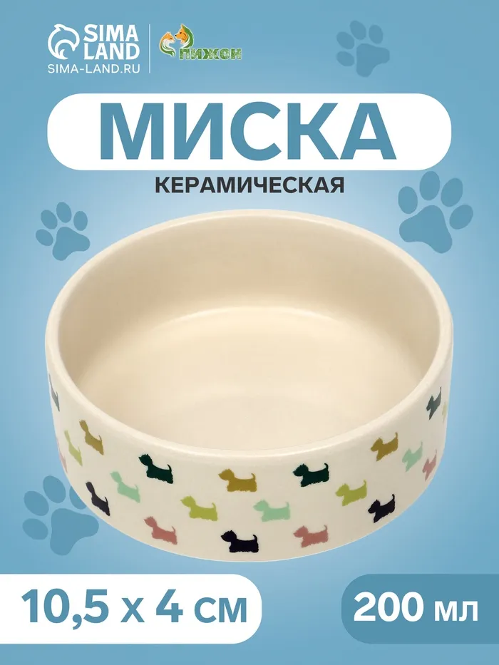 Миска керамическая "Цветные собачки", 200 мл, 10,5 х 4 см