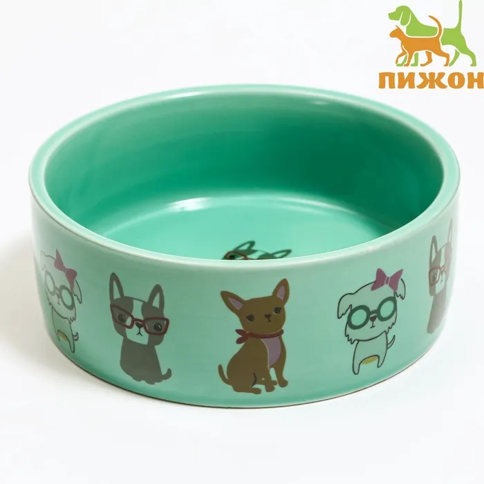Миска керамическая "Важный пес" 250мл, 11,5 х 5 см, мятная