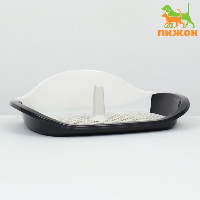 Туалет для собак 67 х 46 х 8 см, со стенкой, съемной решеткой и столбиком, черный