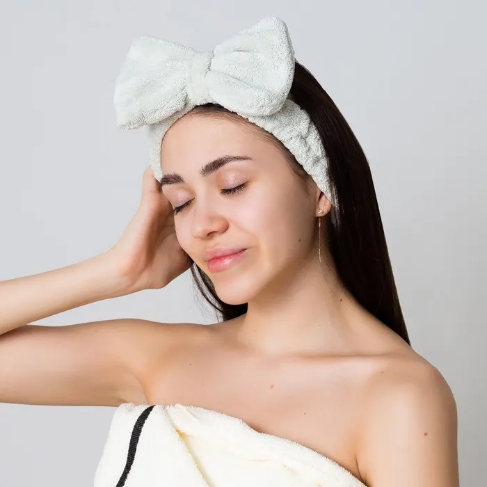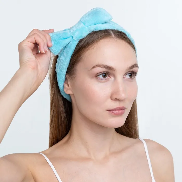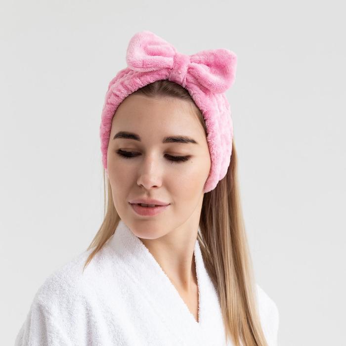 Повязка для умывания из микрофибры Доляна «Бантик», розовая