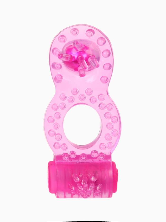 Виброкольцо эрекционное с клиторальной стимуляцией, гелевый силикон, розовый