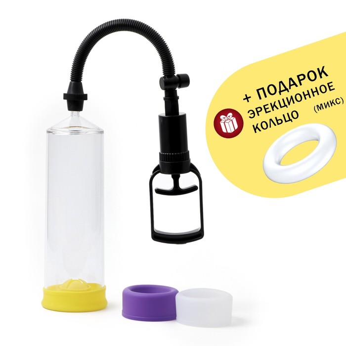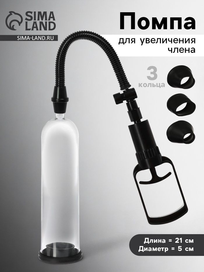 Помпа для увеличения члена, поршень, 3 кольца, ABS-пластик, чёрная, 20.5 см