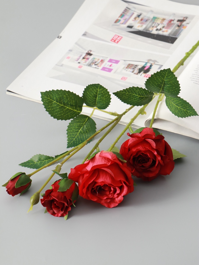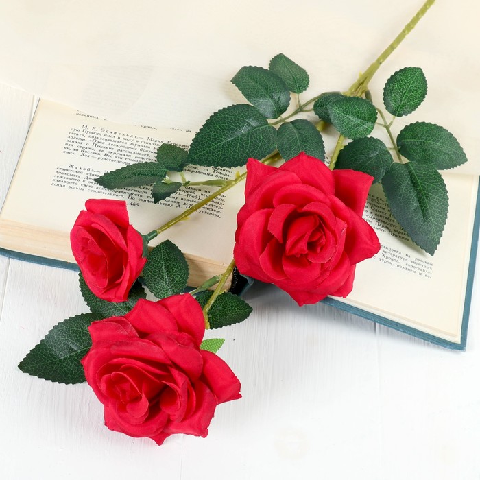 Цветы искусственные «Роза тройная», 6×61 см, красные
