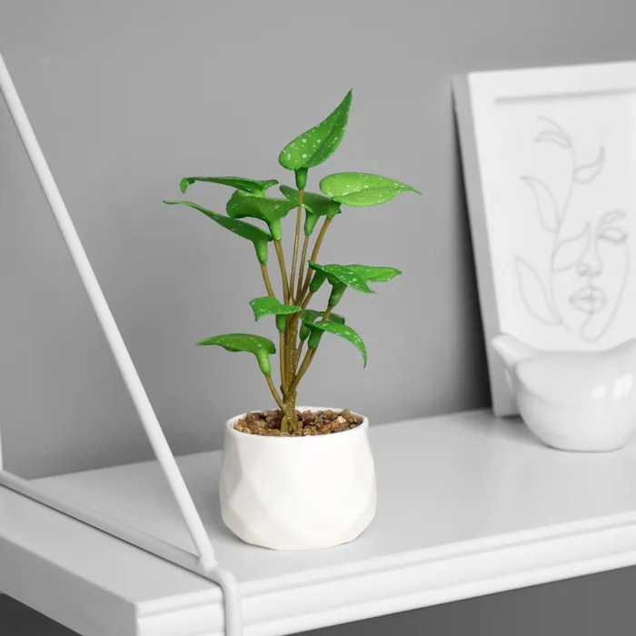 Искусственный цветок в горшке «Сингониум премиум» (мягкий лист), 15×7 см, МИКС