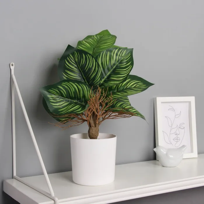 Искусственный цветок в горшке «Калатея комнатная», 31×10 см, зелёный