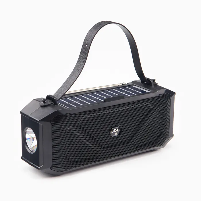Фонарь аккумуляторный, 5Вт, 1200мАч, IPX5, Bluetooth, AUX, USB, радио, солнеч.бат, чёрный