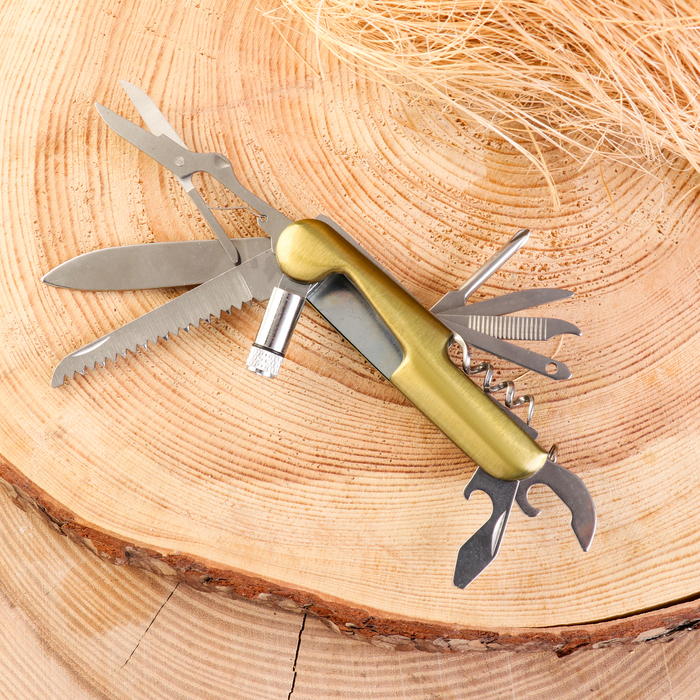 Нож многофункциональный 11в1, 15см, клинок 60/2мм, золотистый