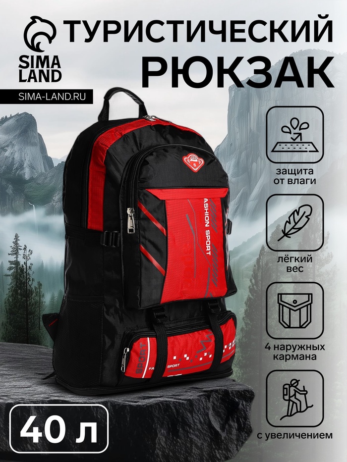 Рюкзак туристический, 40 литров, с увеличением, с карманами, Fashion sport, красный