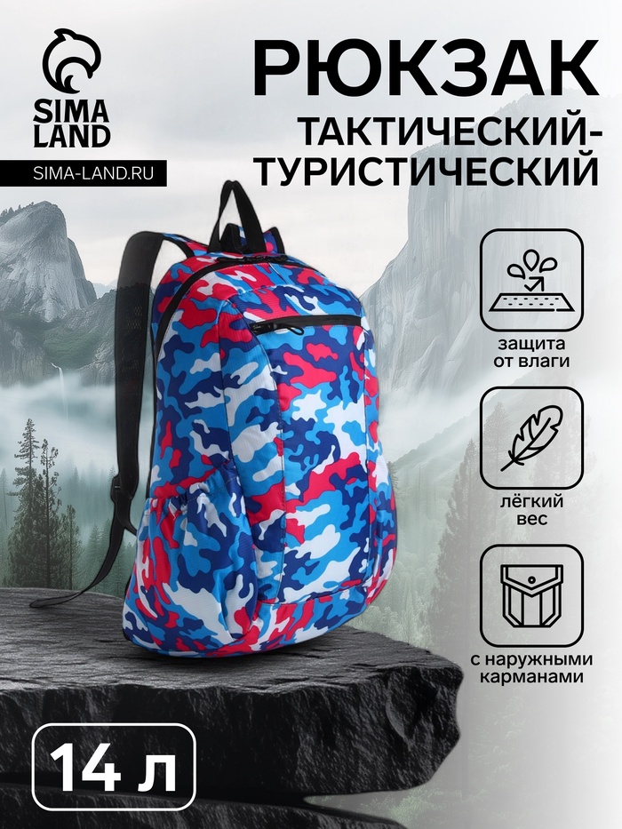 Рюкзак туристический, 22 л, отдел на молнии, 5 наружных карманов, «ЗФТС», цвет камуфляж/хаки