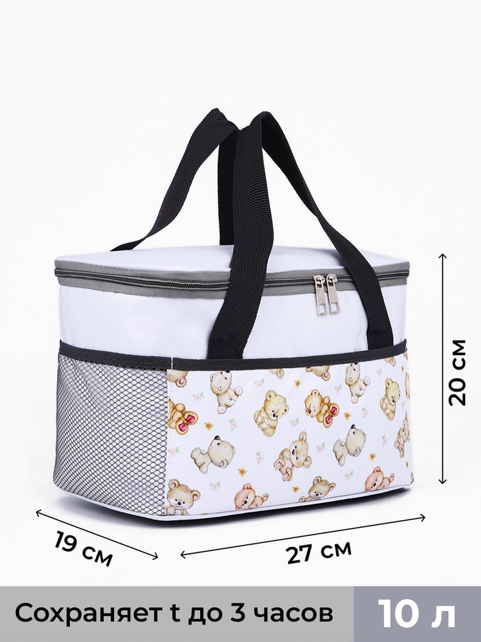 Термосумка для еды «Мишки», на молнии, объём 10 л, серая