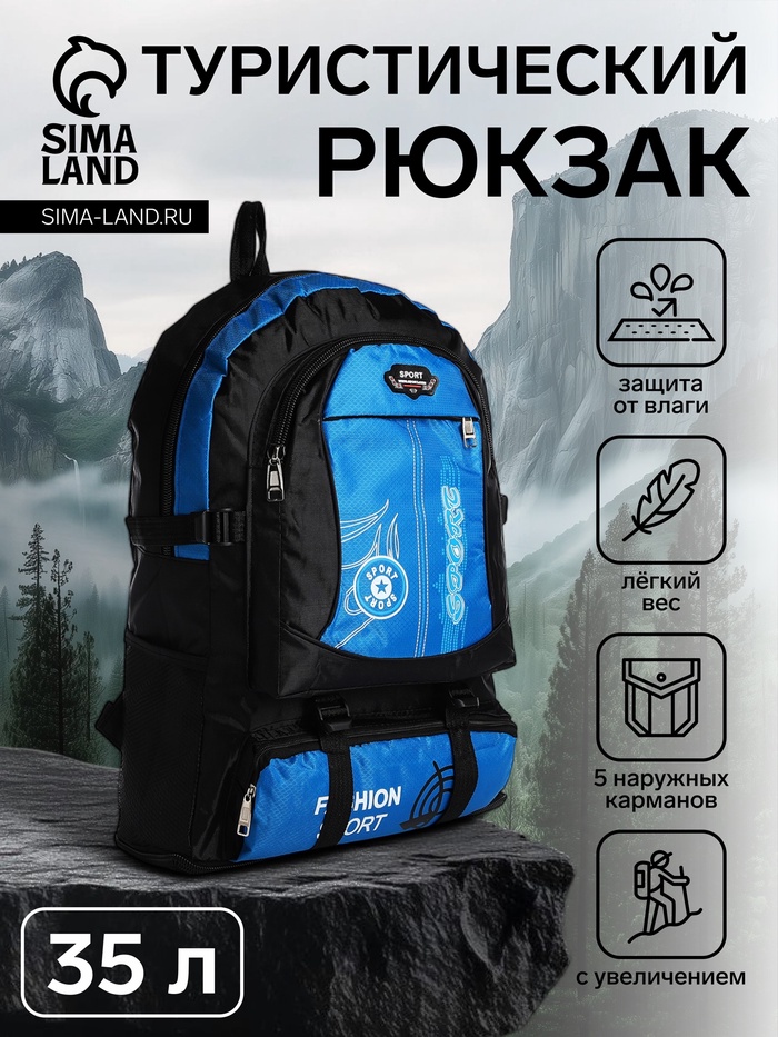 Рюкзак туристический на молнии с увеличением, 35 л, 5 наружных карманов, цвет синий
