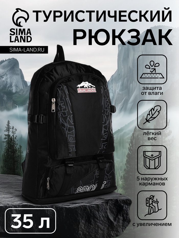 Рюкзак туристический, 35 литров, с увеличением, с карманами, Mountains, чёрный