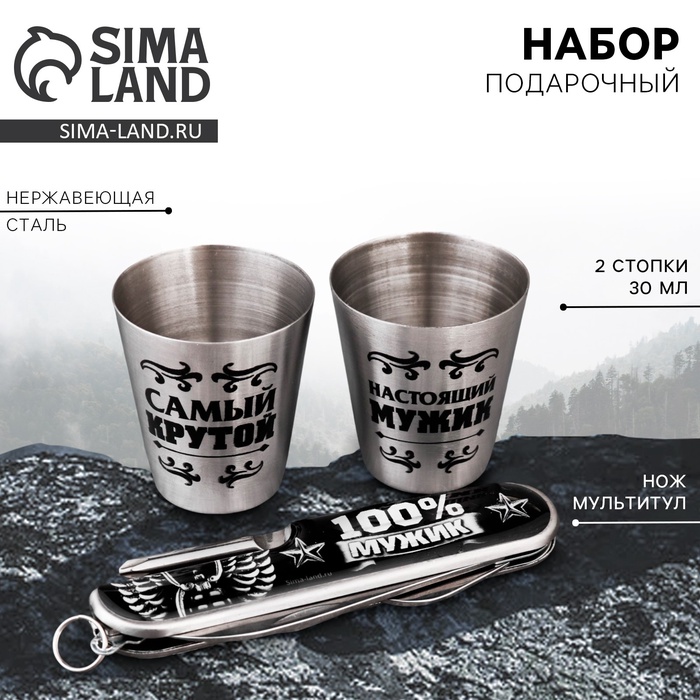 Подарочный набор мужской «Настоящий мужик»: нож мультитул, стопки 2 шт х 30 мл