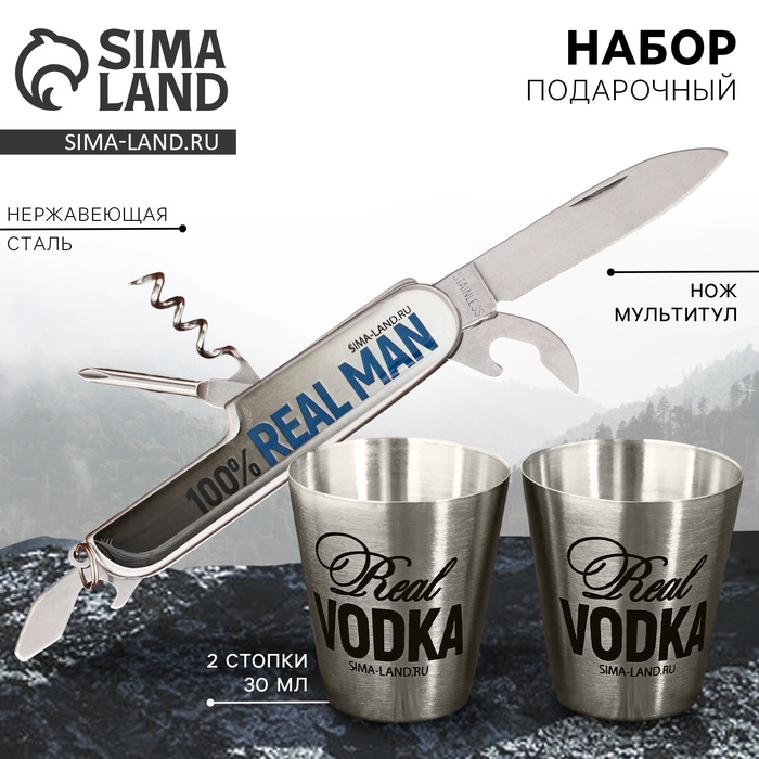 Подарочный набор мужской «Настоящий мужской набор»: нож мультитул, стопки 2 шт