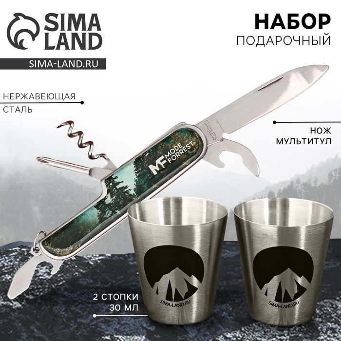 Подарочный набор, нож мультитул, стопки 2 шт.