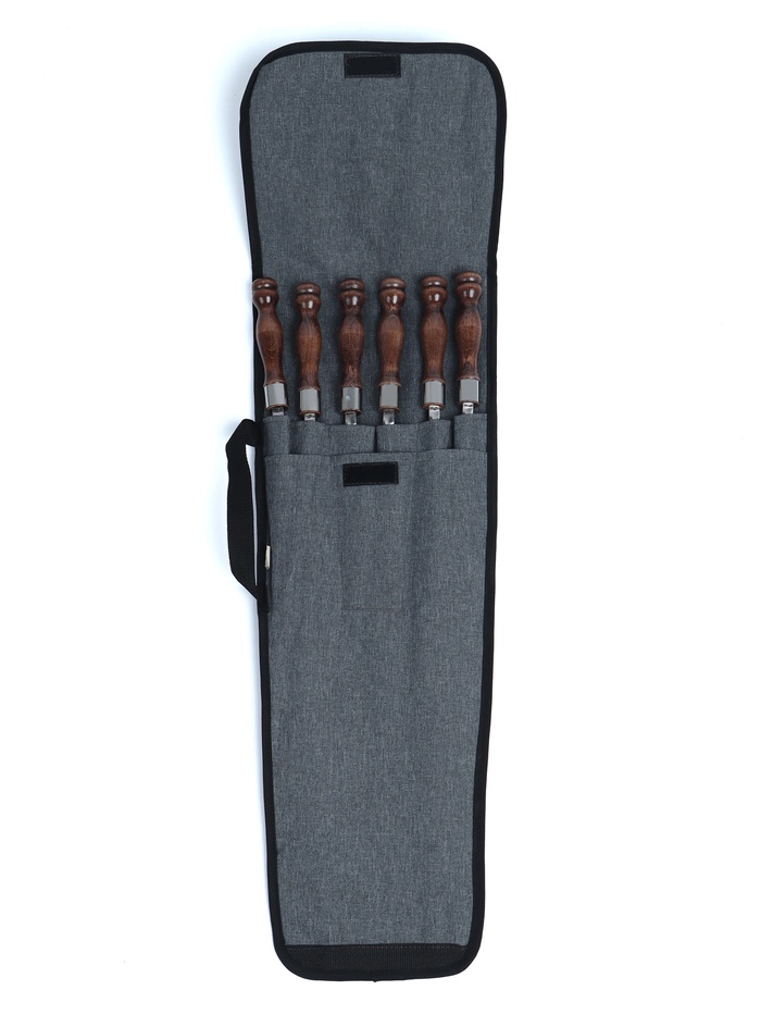 Набор шампуров в колчане, 6 шт., деревянная ручка «Фигурная», 73(50) х 1.2×0.25 см, серый