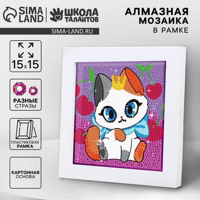 Алмазная мозаика для детей на раме с полным заполнением разнымии стразами «Кошечка», 15 х 15 см
