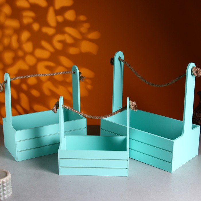 Подарочный ящик «Аром», деревянный, ручка - верёвка, бирюзовый, набор 3 шт.