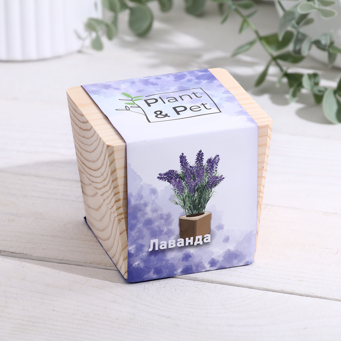 Набор для выращивания P&P «Лаванда», в кубе из дерева