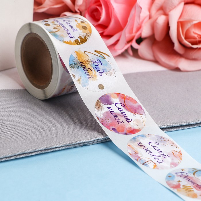Наклейки для цветов и подарков, в рулоне «Самой милой», 4.4×4.4 см, 252 шт.