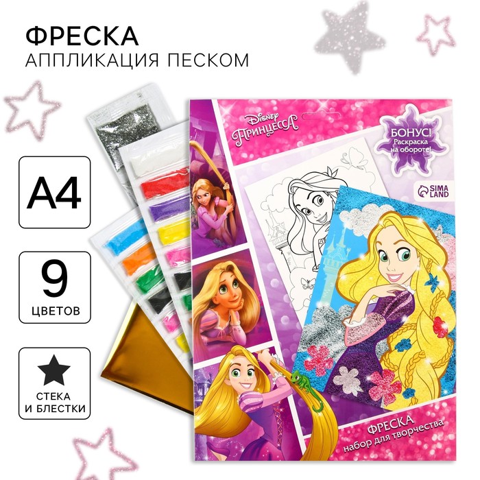 Фреска песком с блёстками «Принцессы», 9 цветов
