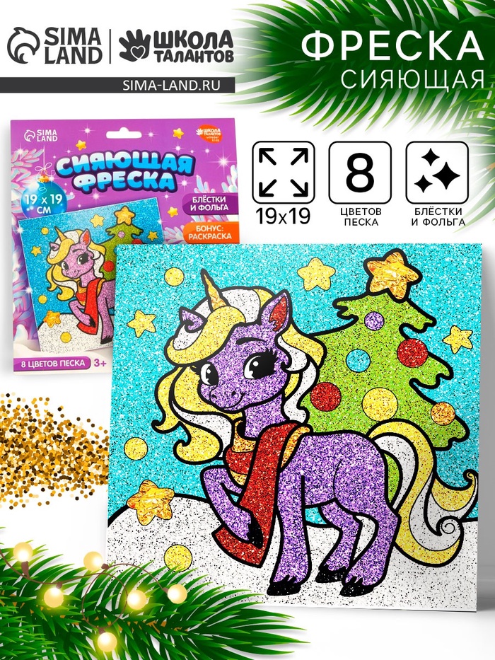 Сияющая фреска новогодняя «Лошадка с ёлочкой», набор для творчества