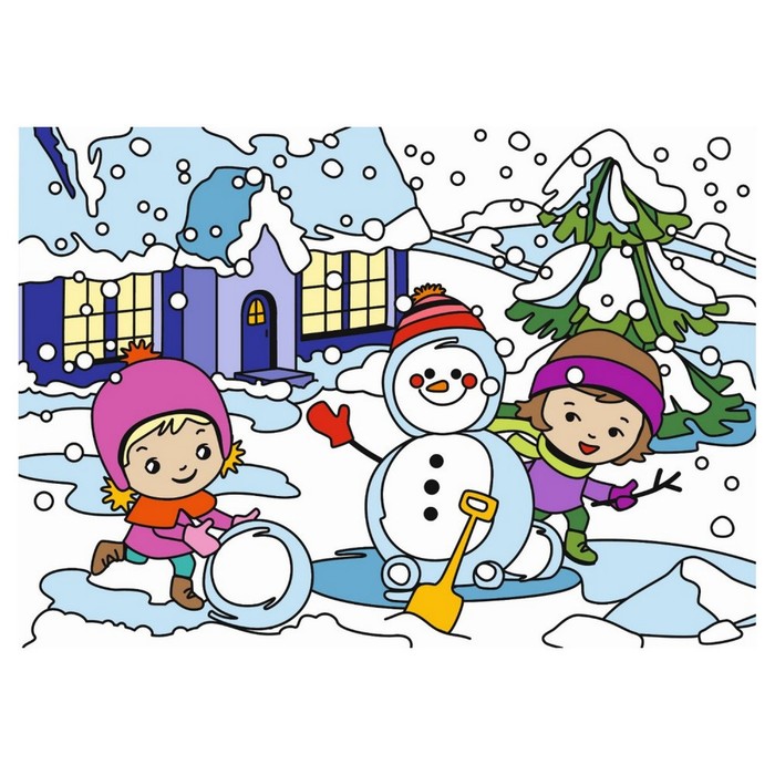 Картина по номерам детская «Снежные забавы», для малышей, новогодняя серия