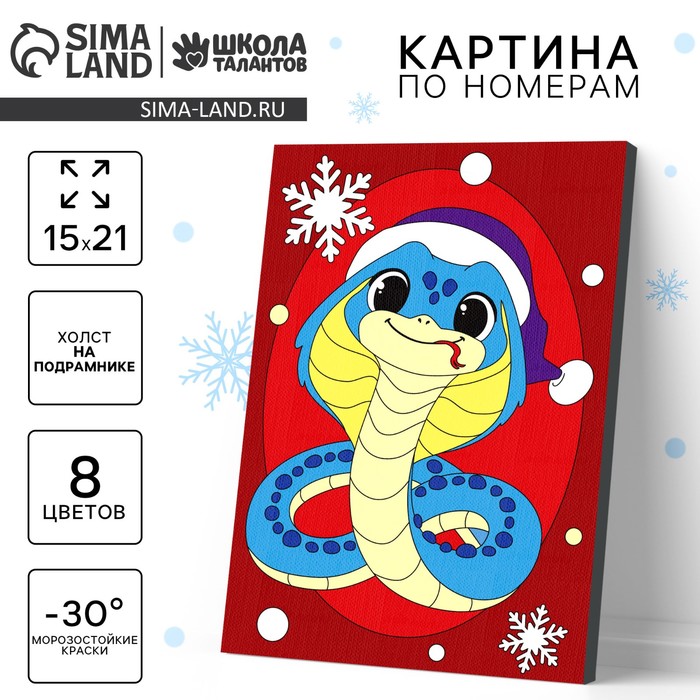 Картина по номерам на новый год на холсте с подрамником «Змейка в шапочке», 21×15 см