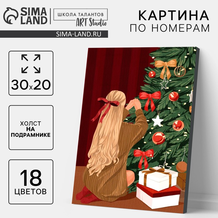Картина по номерам на новый год на холсте с подрамником «Девушка у ёлки», 20 х 30 см