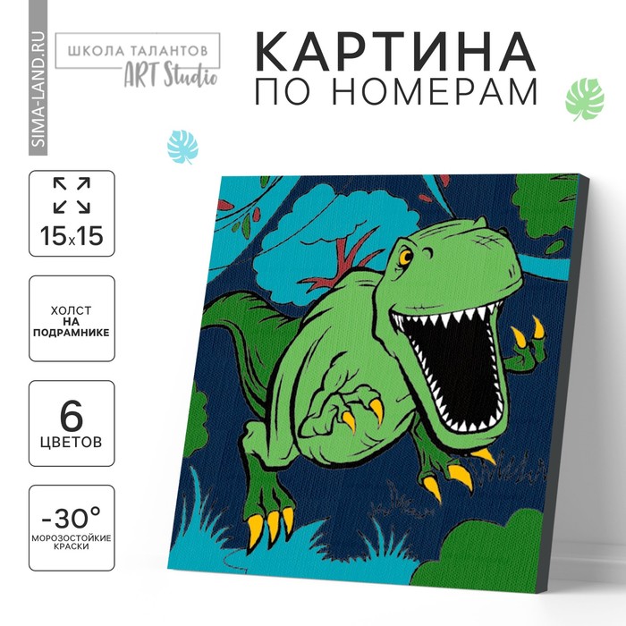Картина по номерам для детей «Динозавр в джунглях», 15 х 15 см
