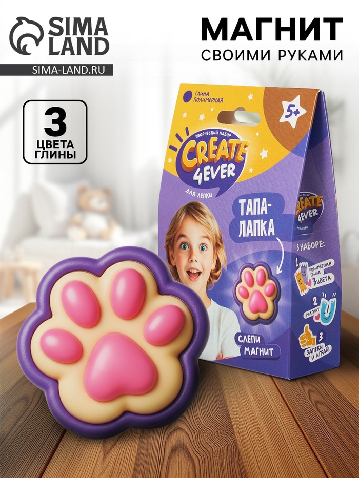 Магнит из полимерной глины своими руками «Лапка», набор для творчества
