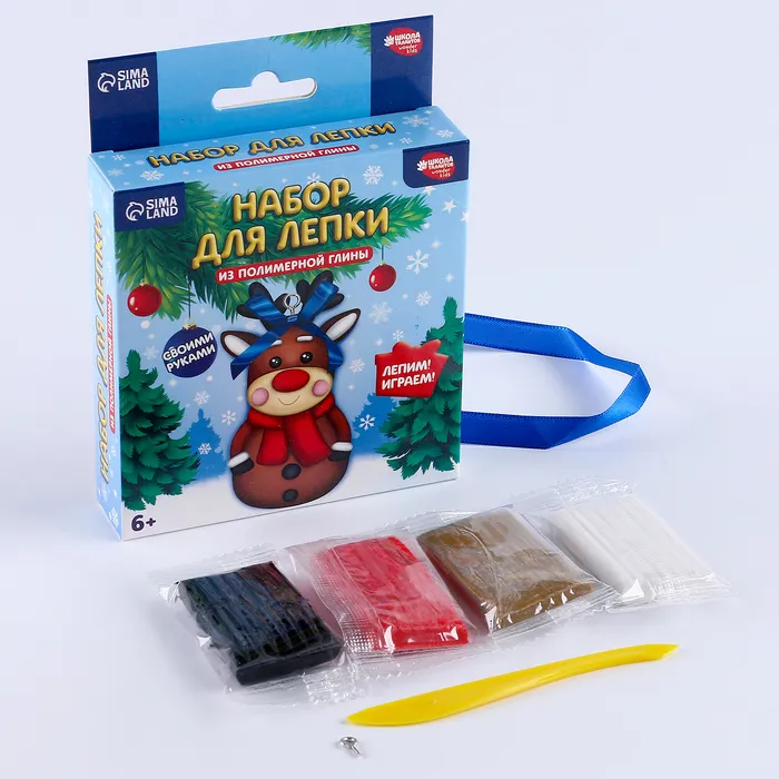 Фигурка из полимерной глины своими руками на новый год «Оленёнок в шарфике», набор для творчества