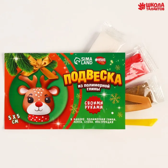 Подвеска из полимерной глины своими руками на новый год «Маленький олень», набор для творчества