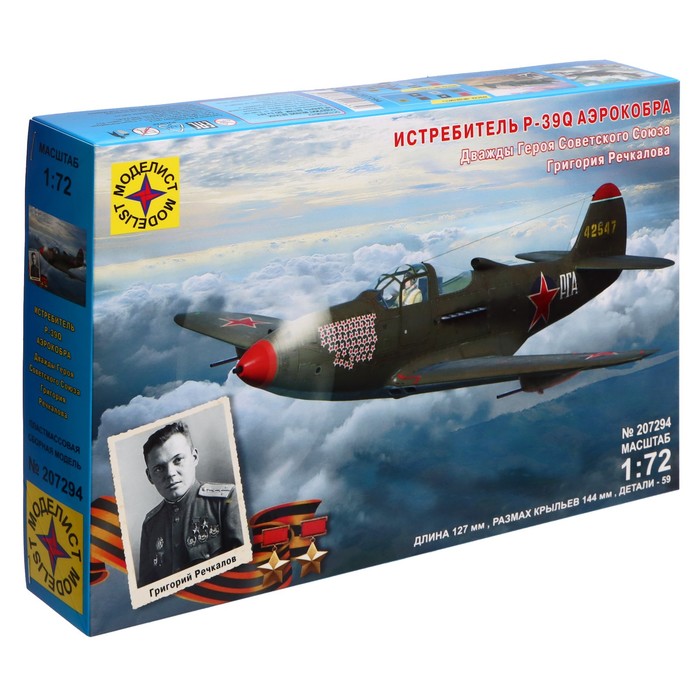 Сборная модель-самолёт «Истребитель P-39Q Аэрокобра. Героя Советского Союза Речкалова Г.А.» Моделист, 1/72