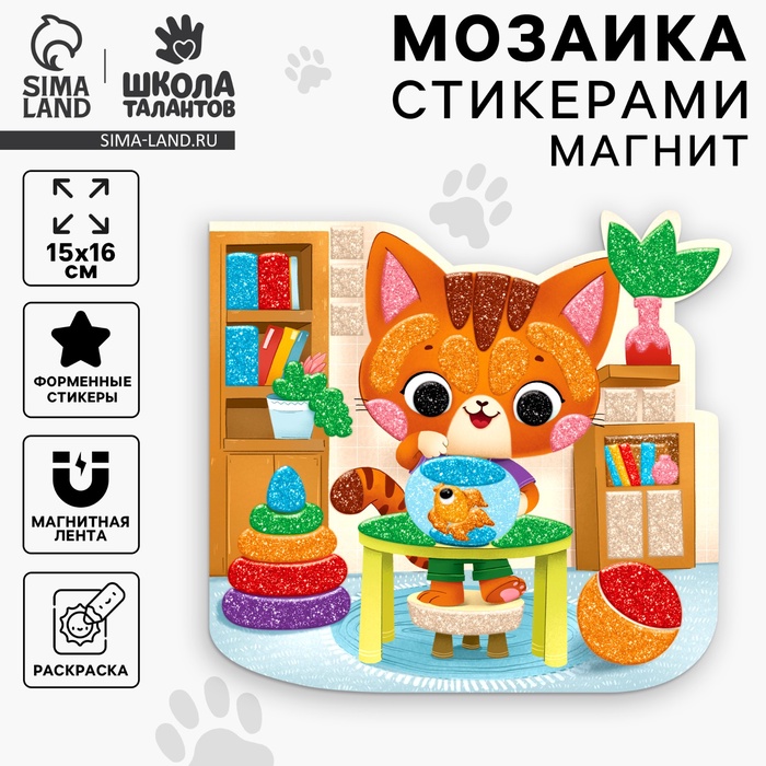 Аппликация стикерами форменная на магните «Рыжий котик», набор для творчества, стикерная мозаика