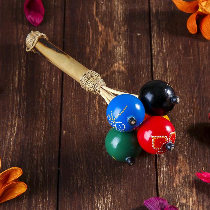 Сувенирный музыкальный инструмент "Маракас с 5 шариками" 10х27х10 см