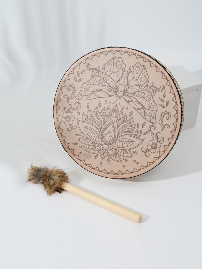 Шаманский бубен "Мехенди. Лотос и бабочка" с колотушкой 5х25х25 см